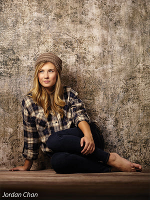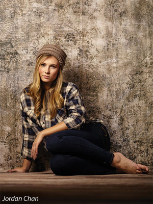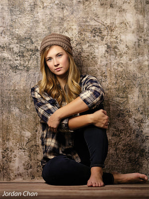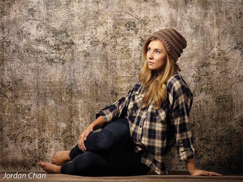 Add timeless depth and character to your studio with the Caliber Photography Backdrop. Featuring a richly layered distressed texture with subtle floral and scrollwork patterns, this backdrop blends earthy brown, gray, and taupe tones. The natural weathered look and tonal variation create an organic, classic setting ideal for portraits, fine art, and editorial photography where understated elegance and texture are essential.