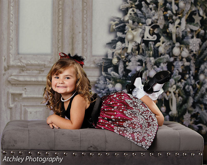 Create a timeless and festive scene with our Vintage Holiday Elegance Photography Backdrop. Featuring a beautifully decorated Christmas tree with frosted snow-covered branches, silver and gold ornaments, and a charming vintage door with frosted glass panels, this backdrop captures the perfect blend of nostalgia and holiday cheer. The intricate details of the door and tree provide an elegant and sophisticated setting, making it ideal for holiday portraits, Christmas cards, and festive marketing campaigns. Available in multiple materials and sizes, this backdrop is designed to meet the diverse needs of professional photographers and elevate any holiday-themed photoshoot.