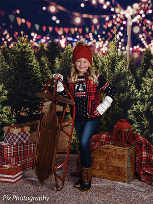 This backdrop transports your photoshoots to an enchanting holiday setting, evoking the festive atmosphere of picking out the perfect Christmas tree on a crisp winter night. The warm, golden lights add a magical touch to the scene, making it ideal for creating holiday memories. The high-resolution design ensures every detail is crisp and clear, from the glowing lights to the lush green trees. The backdrop is versatile and can be used for a variety of photoshoots, including family portraits, kids’ holiday sessions, seasonal event photography, and product shoots.