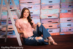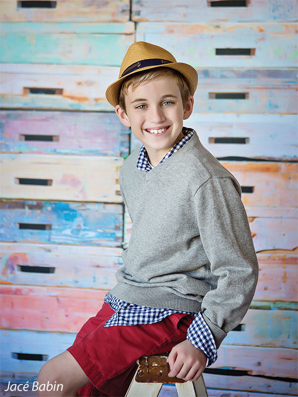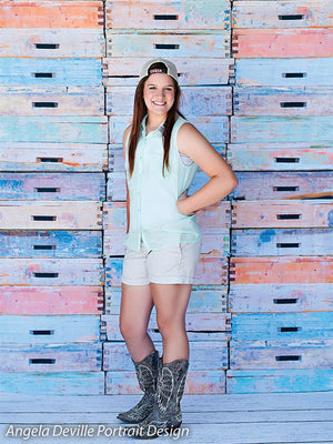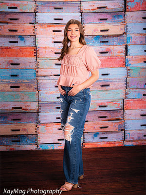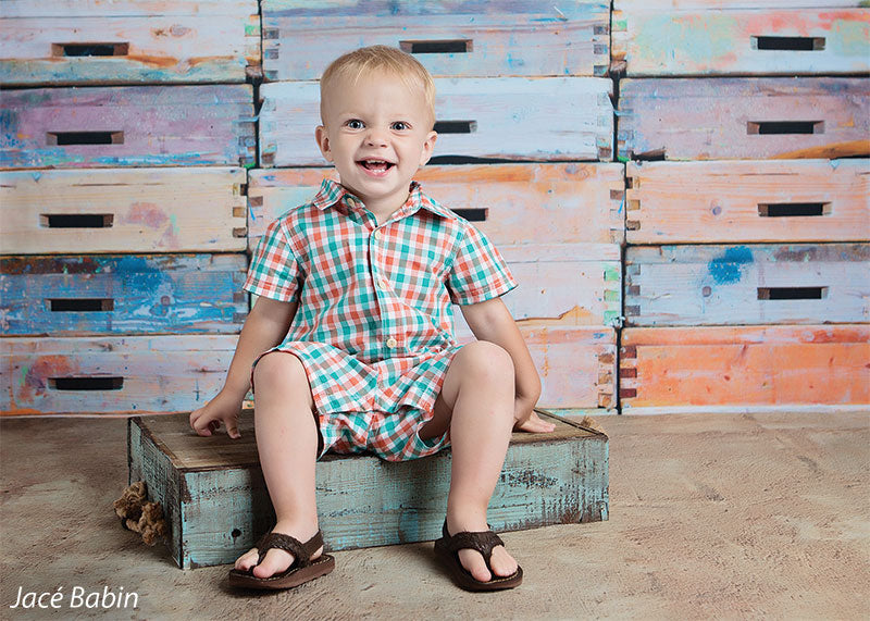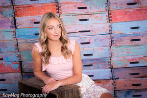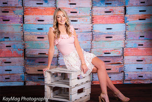 The Rustic Wooden Crate Stack Photography Backdrop brings an industrial vintage charm to your photoshoots. Featuring stacked weathered wooden crates in various vibrant colors like blue, orange, and green, this backdrop offers a unique rustic aesthetic that is perfect for a wide range of photography scenarios. Whether you're capturing portraits, product shoots, or fashion photography, this backdrop adds a bold, eclectic touch to your visual creations. Choose from multiple materials and sizes to fit your studio setup, from small headshot sessions to large commercial projects. With over 50 size and material combinations available, you'll find the perfect backdrop to match your needs.