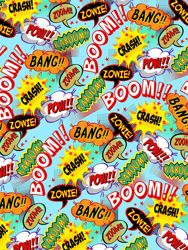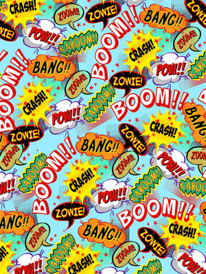 The Comic Book Action Word Explosion Photography Backdrop brings the excitement of classic comic books to your photoshoots. This high-energy, vibrant backdrop features bold action words like "Boom!!," "Bang!!," and "Pow!!" scattered across a bright background, mimicking the thrilling action sequences found in vintage superhero comics. Perfect for adding a dynamic and playful atmosphere to your photos, this backdrop is ideal for kids' parties, comic-themed events, and superhero-inspired photoshoots. Its fun and bold design will engage both children and adults alike, making it a versatile choice for a variety of creative projects.