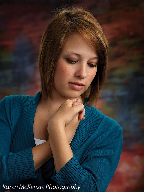 The Tuscan Rose Impressionist Photo Backdrop captures the warmth and rustic elegance of an Italian garden in bloom. With its rich palette of mossy greens, terracotta reds, muted blues, and soft rose tones, this painterly design creates a textured, artistic background reminiscent of oil brushwork on canvas. Perfect for photographers seeking depth, mood, and timeless character in their studio portraits.