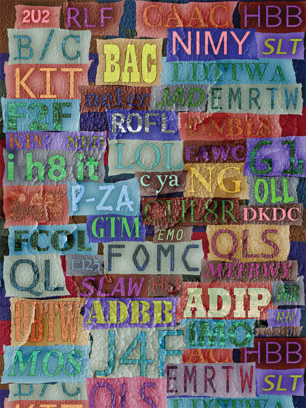 The Texting Photo Backdrop bursts with playful energy, featuring a vibrant patchwork of popular text message acronyms in a colorful, layered design. From “LOL” and “BRB” to “GTG” and “OMG,” this backdrop brings digital culture to life with hand-cut, textured letter panels in neon, pastel, and bold tones. It’s an ideal setting for energetic, expressive portraits and modern creative sessions that reflect the spirit of today’s social language.