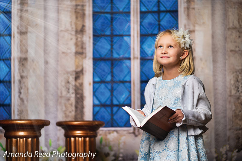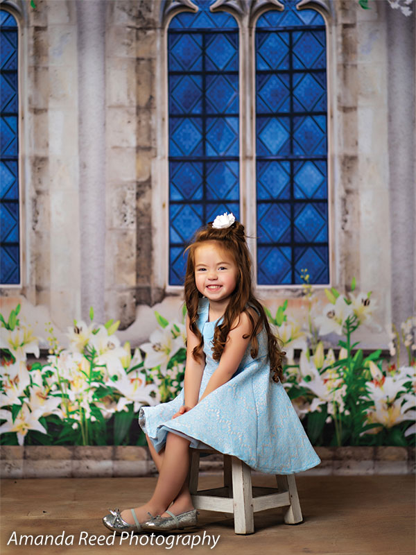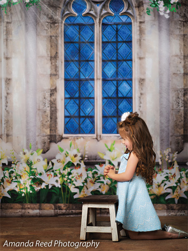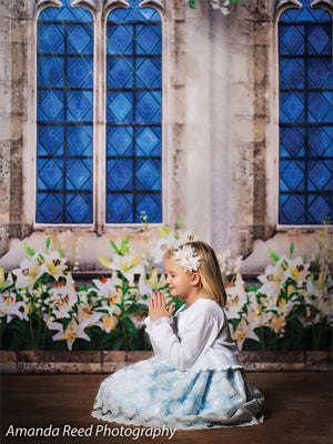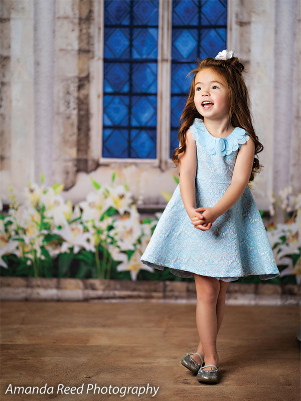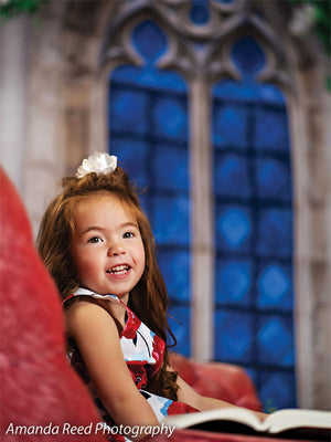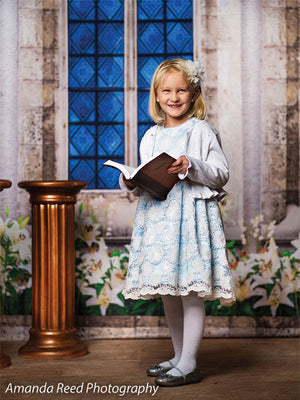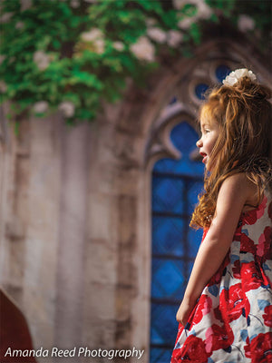 This Gothic Garden Window Photography Backdrop offers a perfect blend of nature and gothic architecture. Featuring an intricately designed stone window with blue stained glass, surrounded by lush greenery and white flowers, this backdrop creates an enchanting and elegant setting for any photoshoot. Ideal for kids’ fantasy-themed portraits, family sessions, and garden-inspired photography, the backdrop adds a timeless and magical touch to your images.