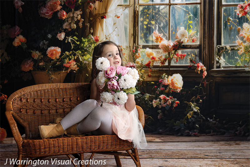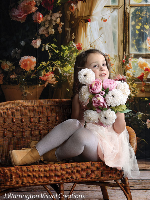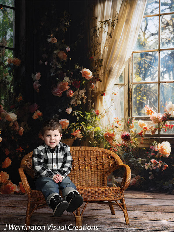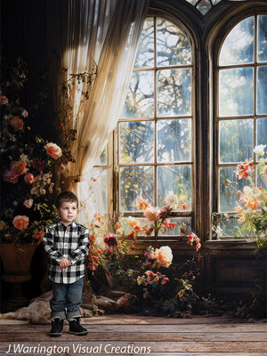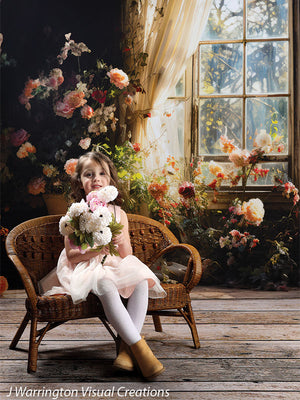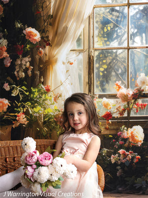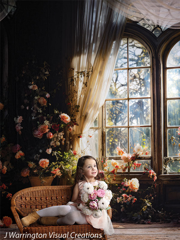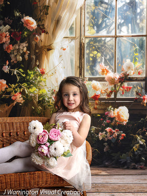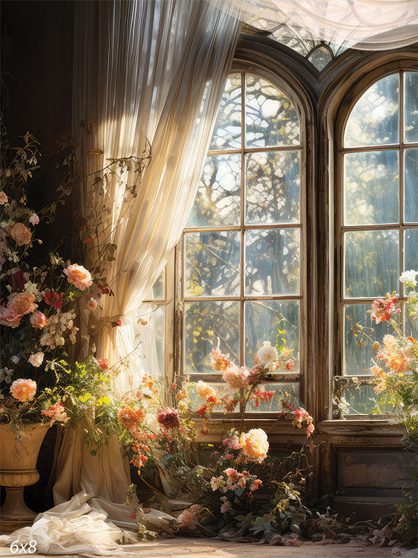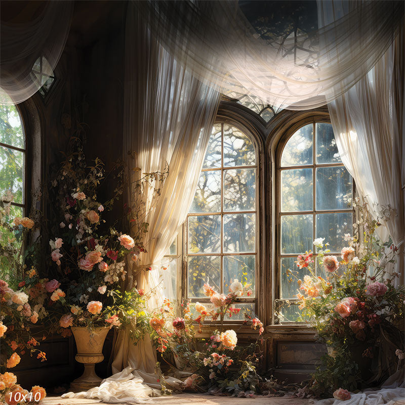 Elegant Floral Spring Afternoon Window Photography Backdrop