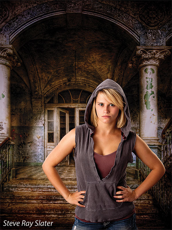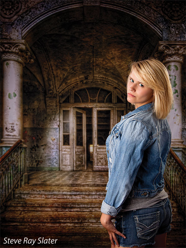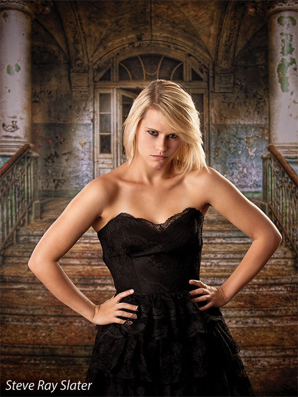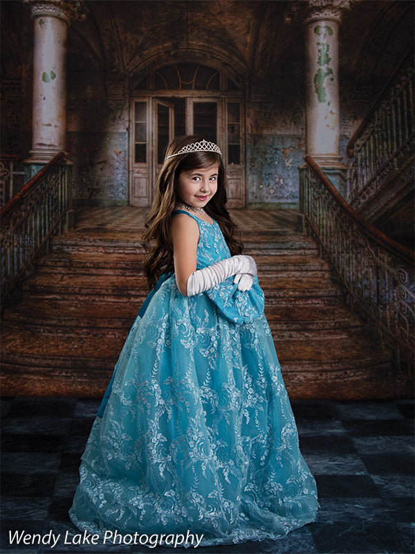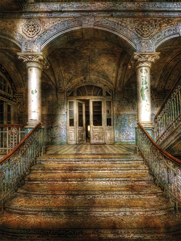 Whether you're shooting portraits, fashion editorials, or event photography, the Rustic Antique Staircase Photography Backdrop provides the perfect setting. The intricate details of the backdrop—such as the ornate columns and timeworn surfaces—capture a mood of vintage elegance, offering photographers a versatile option for a variety of themed photoshoots.