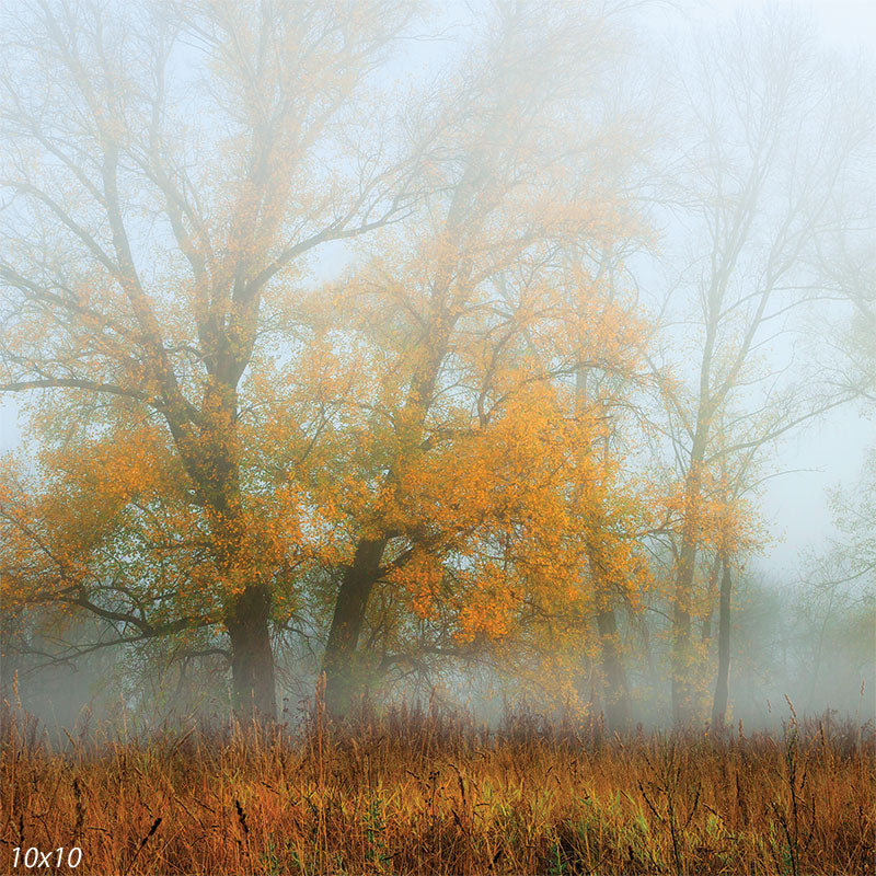 Capture the ethereal beauty of a misty autumn morning with our Misty Autumn Forest Photography Backdrop. This stunning backdrop features tall trees cloaked in golden-yellow leaves, standing gracefully in a hazy, fog-filled forest. The soft mist envelopes the scene, creating a dreamlike atmosphere that evokes feelings of tranquility and serenity. The backdrop's rich, earthy tones—from the amber leaves to the muted browns and greens of the underbrush—blend harmoniously with the mist, making this the perfect setting for enchanting and evocative photoshoots.