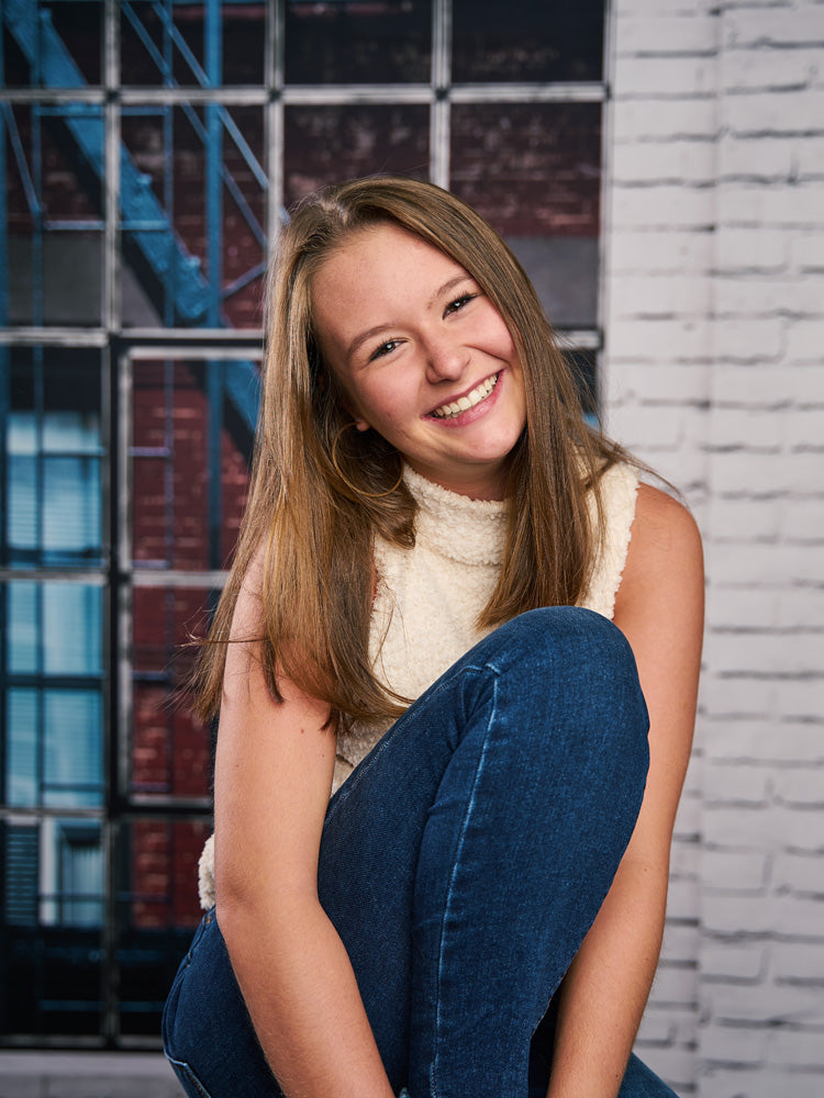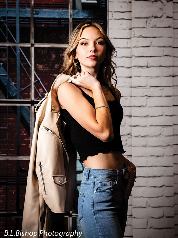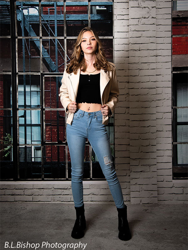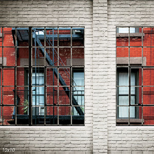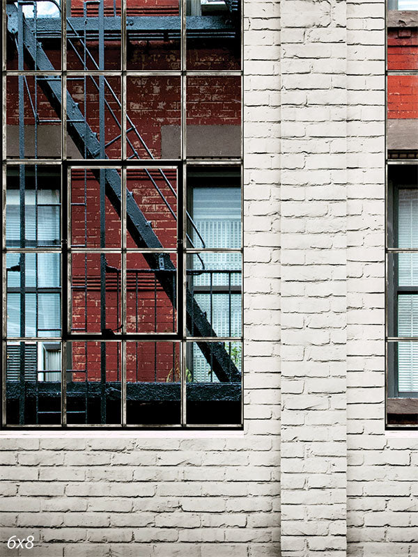 The Brick Wall with Fire Escape Window Backdrop captures the essence of urban architecture with its red brick facade, black iron fire escape, and large windows. This backdrop adds an industrial and gritty city feel to any photoshoot, ideal for fashion, editorial, or lifestyle photography.