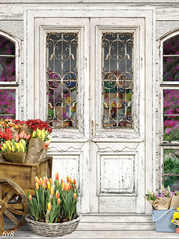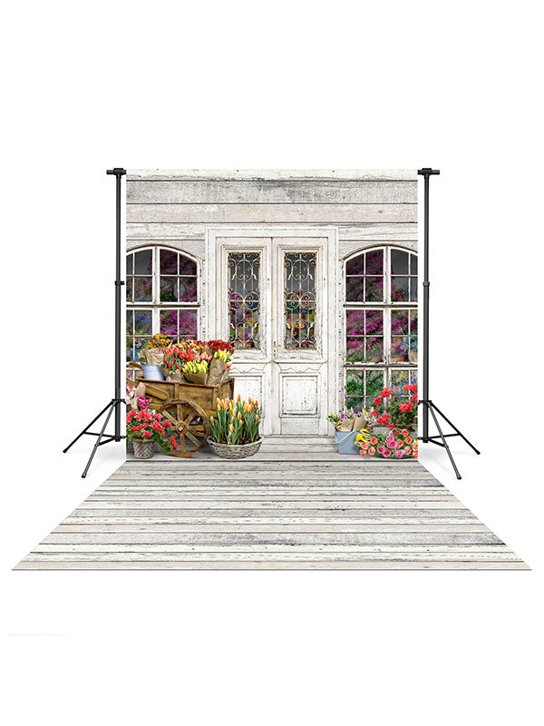 Flower Shop Backdrop and Wood White & Ivory Planks Floor Drop Bundle