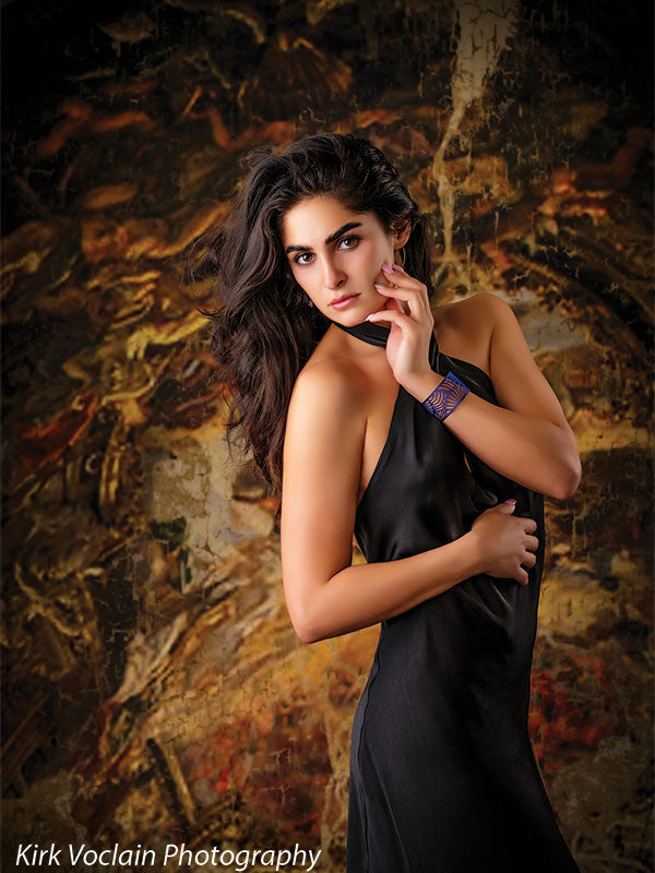 Rich Color Palette: The backdrop is adorned with gold, beige, and muted earth tones, offering a stunning visual texture that pairs beautifully with a wide range of wedding and bridal color schemes.