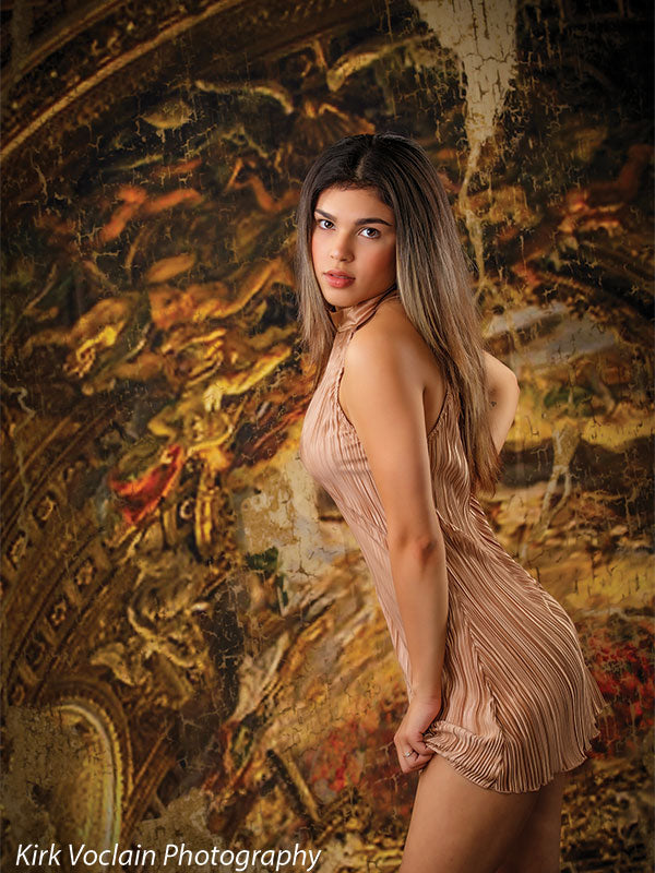 Unmatched Elegance: The intricate mural design and baroque elements give this backdrop an unmatched elegance that complements high-end wedding and bridal photography.