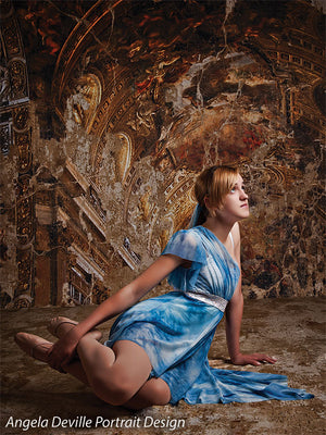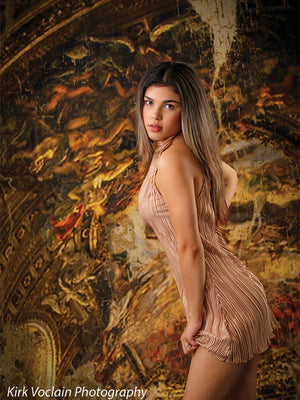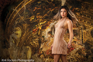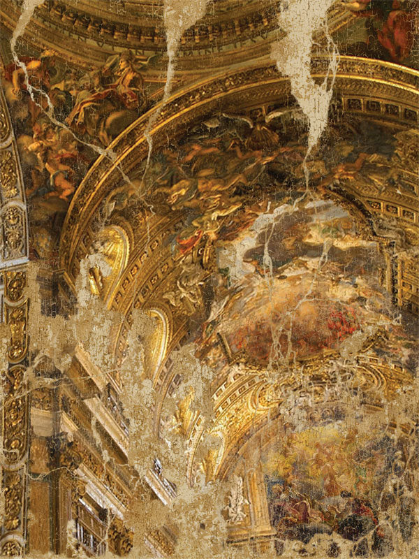 The Fresco Baroque Ceiling Mural Wedding Backdrop offers a luxurious and visually stunning addition to any professional photoshoot, particularly for weddings, bridal showers, and other elegant occasions. This beautiful backdrop recreates a classic baroque fresco mural, featuring rich golds, intricate patterns, and deep, dramatic textures that evoke an old-world charm, perfect for adding grandeur to your photography sessions. Whether you're photographing a bridal portrait or capturing wedding memories, this backdrop will provide an opulent atmosphere that complements your subject beautifully.