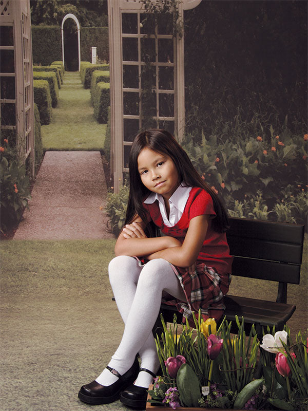 Capture timeless elegance with the Garden Trellis Photography Backdrop. Featuring a charming arbor and symmetrical hedges leading into a lush, manicured garden, this backdrop evokes the serenity and sophistication of a botanical setting. Ideal for portraits, weddings, or spring-themed sessions, it adds a graceful natural touch to any shoot.