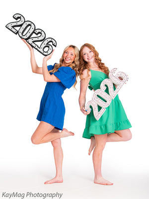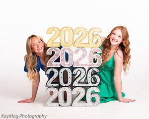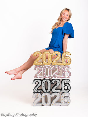 Bring some sparkle to your graduation and senior portrait sessions with this Glitter Medium Calendar Year Prop. Hand-painted with a textured pebble finish and sealed with a clear coat to lock in the glitter—no mess, just shine.