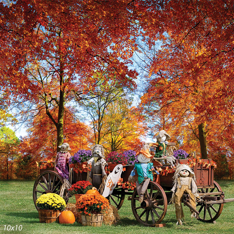Celebrate the beauty and whimsy of the autumn season with the Autumn Harvest Scarecrow Photography Backdrop. This vibrant and charming scene captures the essence of fall, showcasing a delightful array of scarecrows surrounded by an explosion of autumn colors. Perfect for seasonal photoshoots, this backdrop brings the warmth and joy of harvest time to your photography sessions.