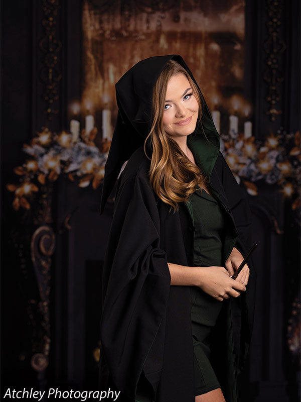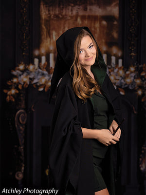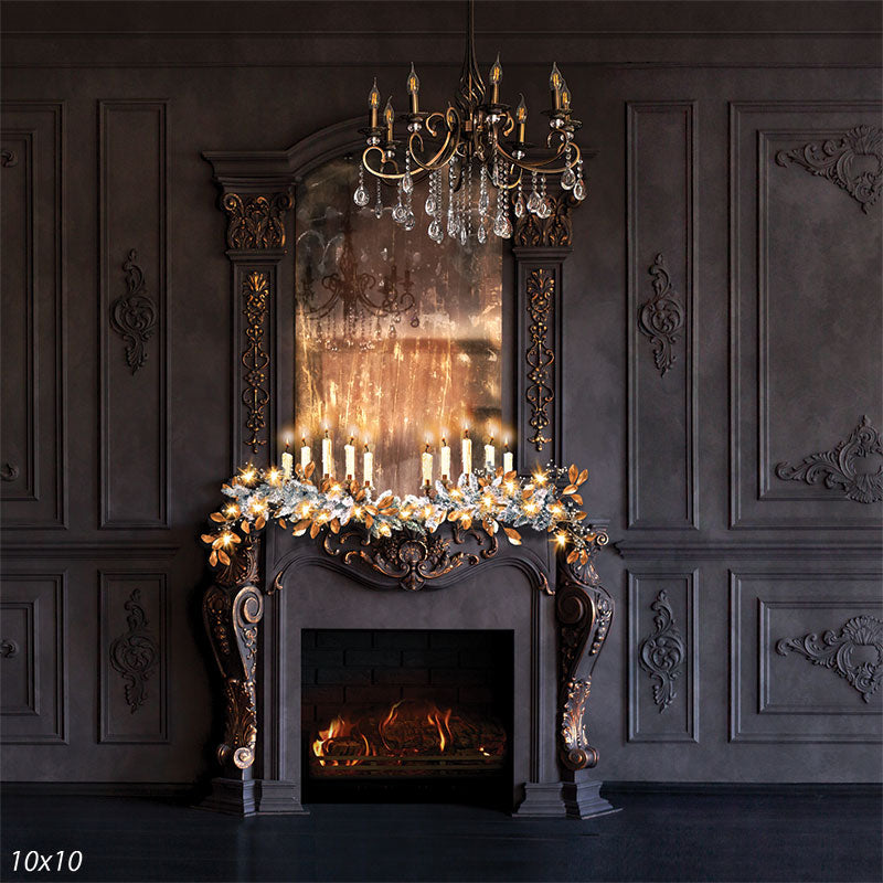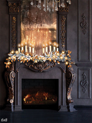 The Elegant Holiday Fireplace Photography Backdrop offers a luxurious and festive holiday setting, perfect for capturing warm and inviting photoshoots. Featuring an ornate fireplace with rich wood tones, golden garlands, and twinkling candlelight, this backdrop creates an elegant and sophisticated scene for holiday-themed photography.