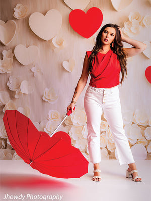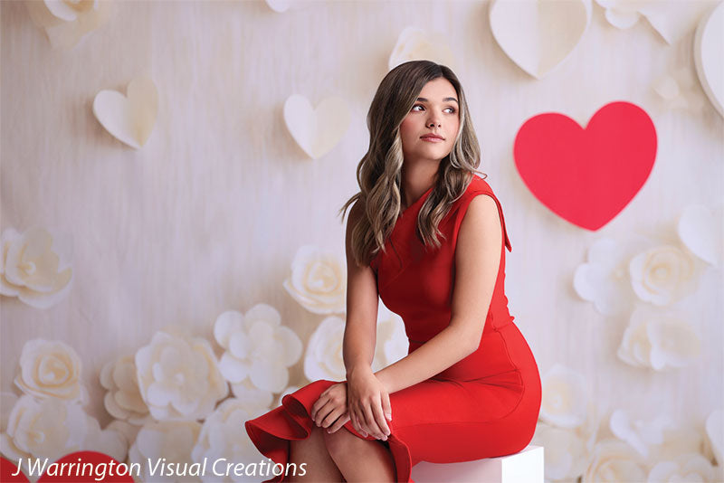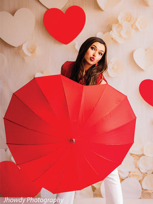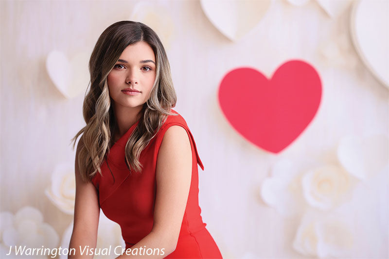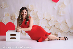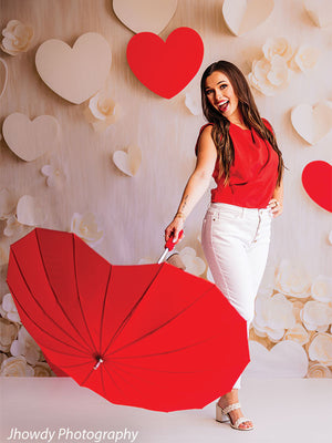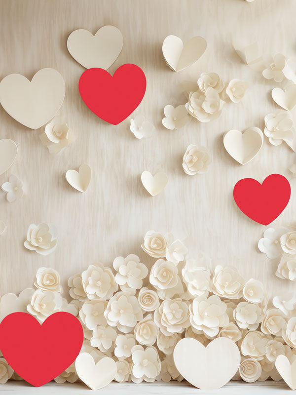 The Romantic Heart and Flower Photography Backdrop is a beautifully designed piece that creates a dreamy and romantic atmosphere for your photoshoots. This backdrop features a combination of red and white hearts alongside delicate cream-colored paper flowers against a soft, textured background. The elegant arrangement of hearts and flowers adds a touch of sophistication and charm to any photograph.