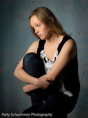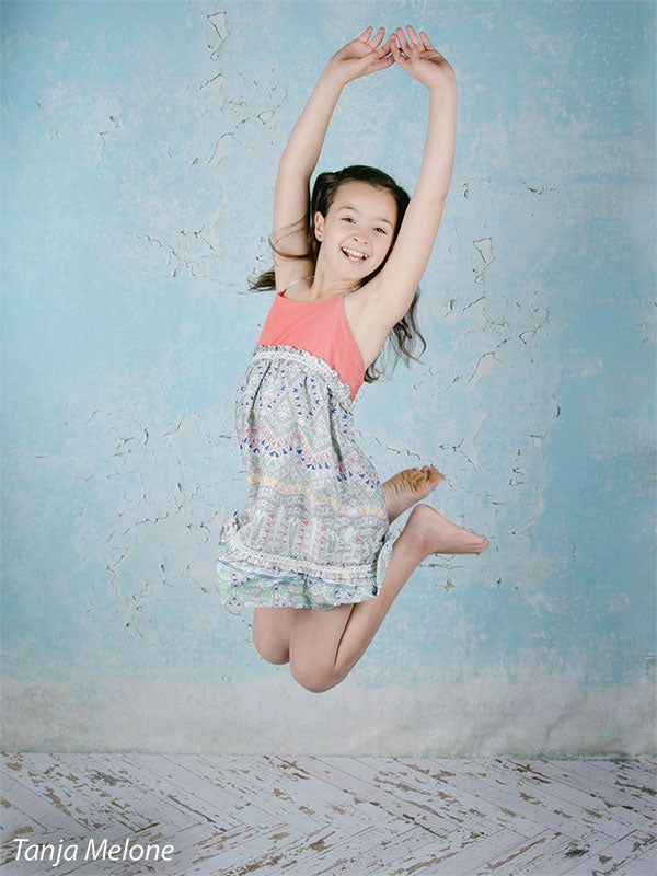 Bring the character of an aged urban loft into your studio with the Loft Photography Backdrop. Featuring a distressed blue wall design with subtle crackling and patina effects, this backdrop offers a timeless, weathered aesthetic. Its muted tones and authentic texture provide the perfect neutral-yet-interesting background that complements a wide range of photography styles without distracting from the subject.