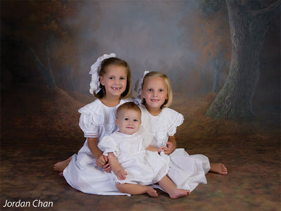 The Madisonville Photography Backdrop presents a serene autumn forest bathed in mist and framed by towering trees. Rich fall foliage carpets the ground in warm oranges, reds, and golden tones, while the misty horizon draws the eye inward, creating exceptional depth for portrait compositions. Ideal for dreamy, seasonal, or fairytale shoots, this backdrop evokes calm and nostalgia.