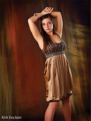 The McKenzie Photography Backdrop is a stunning fusion of rustic earth tones and abstract expressionism. With cascading vertical strokes in shades of burnt sienna, soft gold, walnut brown, and muted cream, this painterly background offers a naturally artistic ambiance. Ideal for both timeless and contemporary studio work, it brings subtle depth and warmth to every frame.