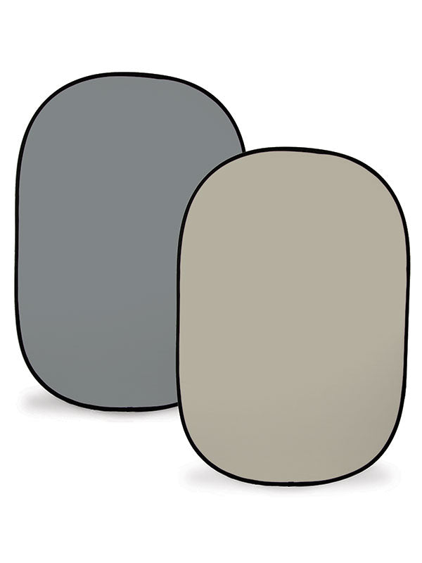 Double Sided Collapsible Backdrop features a different solid color on each side a medium toned gray on front and light fray color on the back. Two backdrops in one! Constructed with a wrinkle resistant fabric, then bound by a metal wire to give it flexibility. Photographers on the go love the ease of transporting and setting up this style of photography backdrop. To hang easily use a Twist Flex Backdrop Clamp The clamp can be attached to a heavy duty Light Stand.