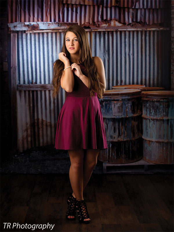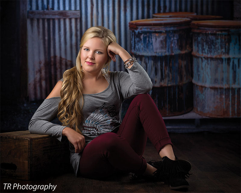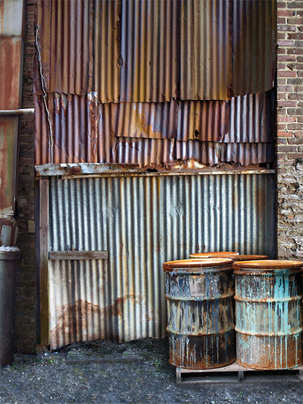 This rusty industrial metal and barrel photography backdrop provides a rugged, urban aesthetic that is perfect for grunge, industrial, and creative photoshoots. The backdrop features a corrugated metal wall with visible rust, peeling textures, and weathered barrels, offering a raw, gritty setting for any project. The high-resolution design captures every detail of the rusty metal and distressed surfaces, ensuring that your images maintain a professional, high-quality look. This backdrop is ideal for fashion, editorial, and artistic photography, as well as music video shoots and other creative projects.