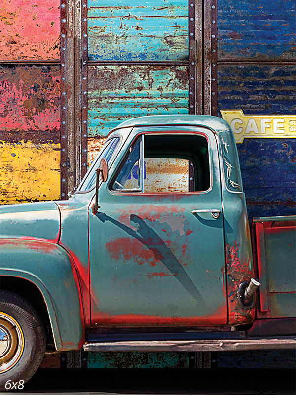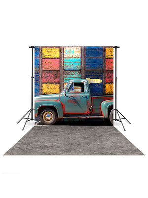 Old Blue Truck Backdrop and Rough Concrete Floor Drop Bundle