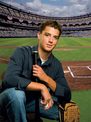 Bring the spirit of the ballpark to your next session with the Opening Day Photography Backdrop – Baseball Stadium Field with Home Plate View, perfect for sports fans and photographers who love big-league energy.