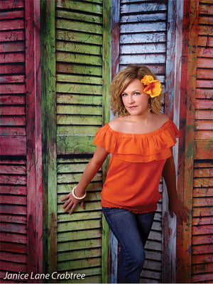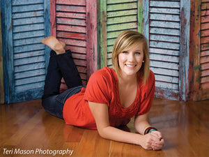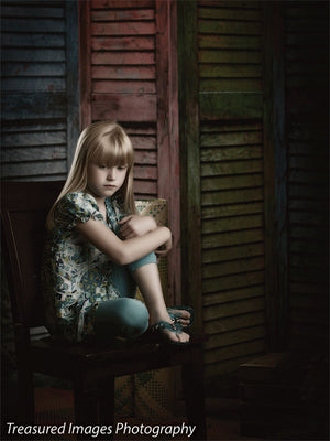 The Pastel Shutters Photography Backdrop delivers a charming, rustic look with its multicolored, distressed wood shutters in soft hues of blue, pink, green, and orange. The folding shutter panel design creates dimensional depth and adds a burst of eclectic texture—perfect for adding visual interest to any portrait or styled shoot. Whether you're capturing whimsical child sessions or trendy editorial looks, this backdrop sets a creative, vibrant tone.