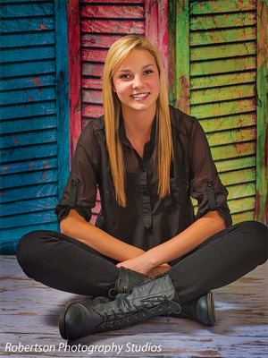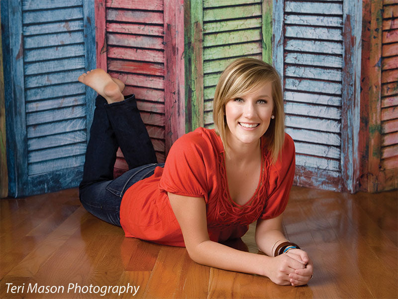 Bring personality and color to your set with the Pastel Shutters Photography Backdrop—a fun, textured statement piece that turns any session into a vibrant storytelling moment.