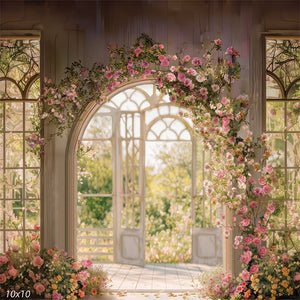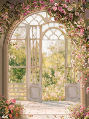 The Romantic Spring Floral Garden Solarium Backdrop is designed to bring elegance and warmth to any professional photography session. Featuring soft pastel tones, lush floral arrangements, and an open arched window leading to a blooming garden, this spring backdrop exudes romance and tranquility. The floral patterns combined with natural sunlight filtering through the solarium create a dreamy atmosphere ideal for seasonal portraits, weddings, and Easter-themed shoots. The backdrop’s intricate details and soft textures make it an essential addition for photographers seeking a floral backdrop that complements a wide range of photography themes.