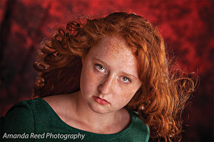 The Rosy Red Photography Backdrop features a moody and intense crimson texture with a softly concentrated vignette center, making it a powerful choice for portraits that require atmosphere and emotion. This backdrop’s marbled, painterly design creates visual depth without distracting from your subject. With its fiery red core and rich burgundy edges, it’s perfect for fine art sessions, fashion editorials, and high-drama studio shoots.