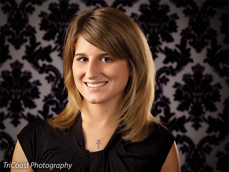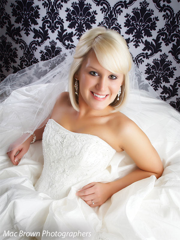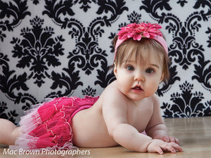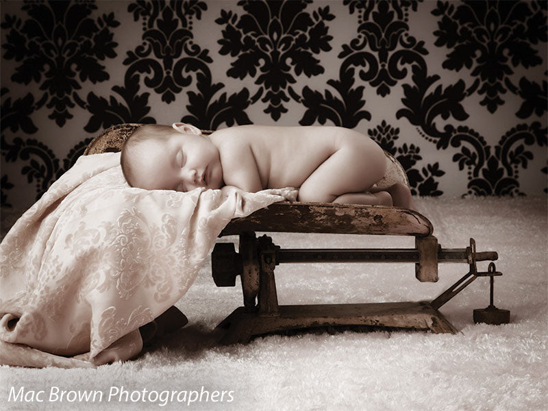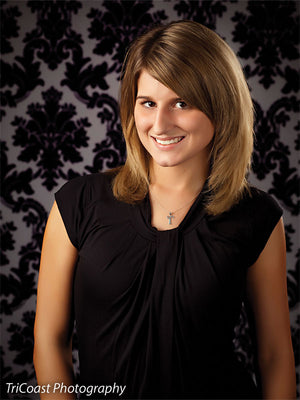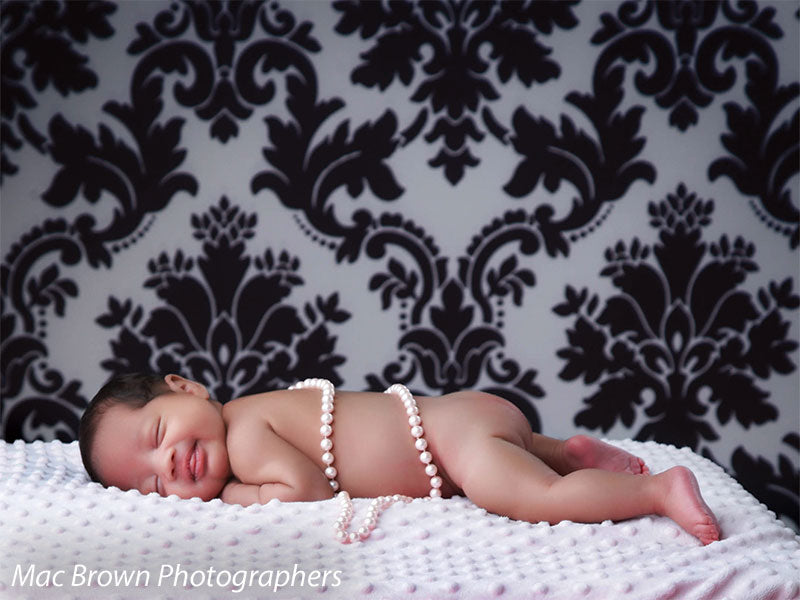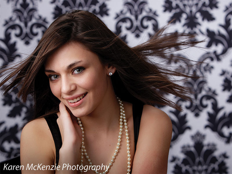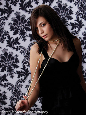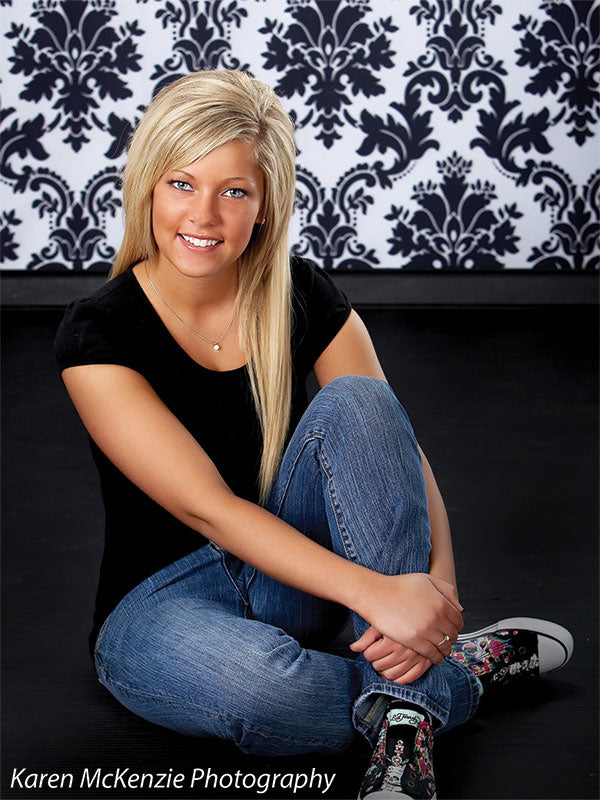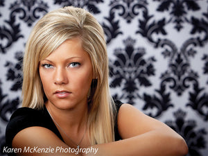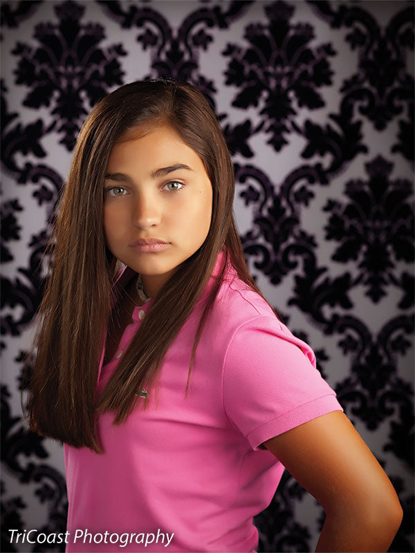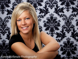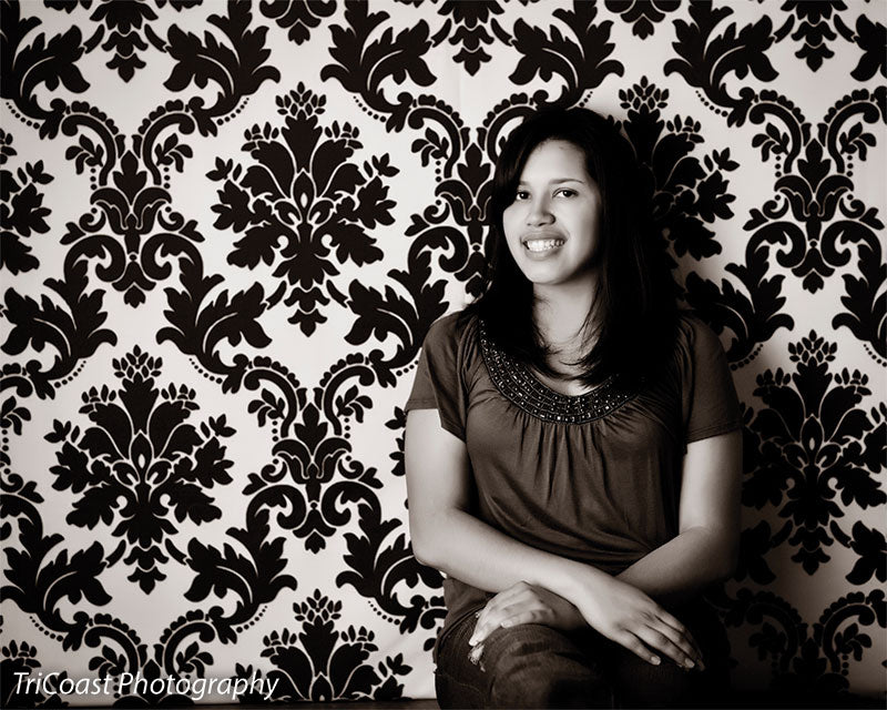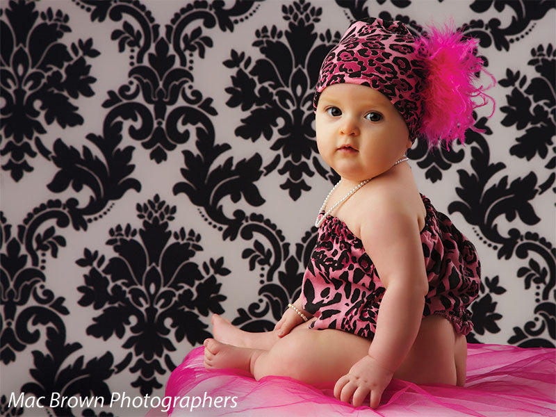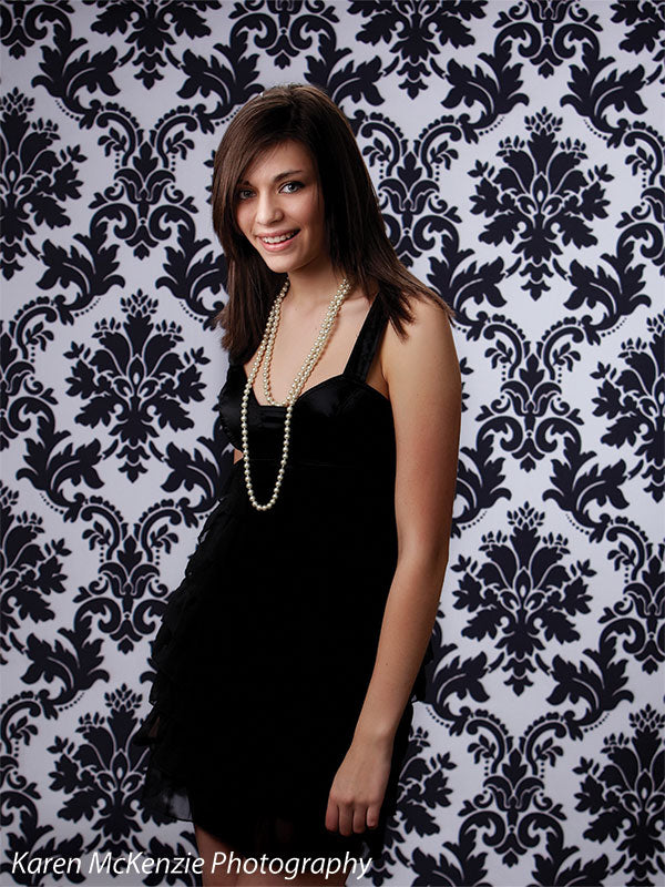 Make a statement in your studio with this bold, vintage-inspired damask backdrop that never goes out of style.