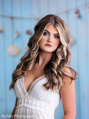 The Beach-Themed Seashell & Starfish Photography Backdrop is the perfect choice for photographers looking to bring a touch of the seaside to their photoshoots. The backdrop features a light blue, weathered wood design that resembles a classic beach boardwalk. Draped across the top is a charming garland of seashells, starfish, and other nautical elements, offering a whimsical touch that makes it ideal for kid-friendly sessions. Whether you are capturing beach-themed birthday portraits or summer holiday family photos, this backdrop creates an airy, coastal vibe that complements any cheerful, summery setting.