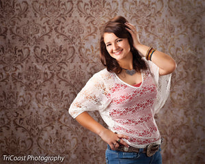 The Gold Damask Vintage Pattern Photography Backdrop adds a touch of elegance and opulence to any photoshoot. Featuring a refined gold damask pattern set against a distressed, vintage-inspired texture, this backdrop is perfect for photographers who want to create a classic or luxurious atmosphere. The intricate pattern combined with the worn, aged appearance makes it a versatile choice for various photography styles, from portraits to wedding photography and even product or fashion shoots.