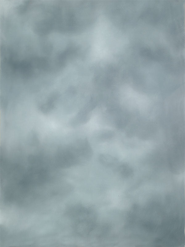 Gray muslin backdrop resembles a cloudy gray sky.  Backdrop has light and dark shades of gray with white highlights throughout.