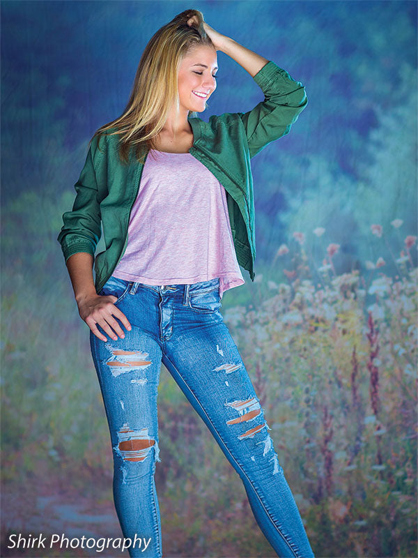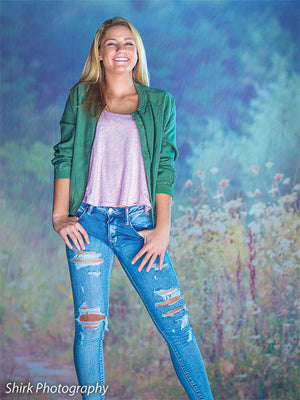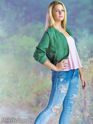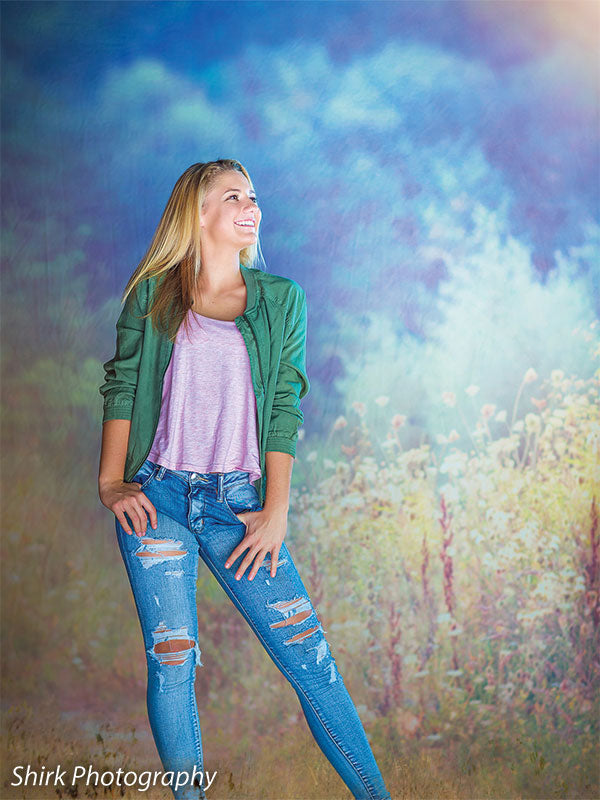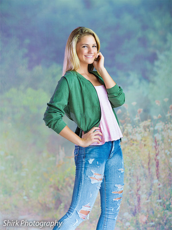 The Misty Forest Path Photography Backdrop brings the beauty of nature into your photography sessions with a soft, sunlit pathway winding through a meadow surrounded by misty trees. This tranquil scene, featuring a dreamy blend of greens, browns, and subtle wildflower hues, creates a peaceful and romantic setting for all types of photoshoots.