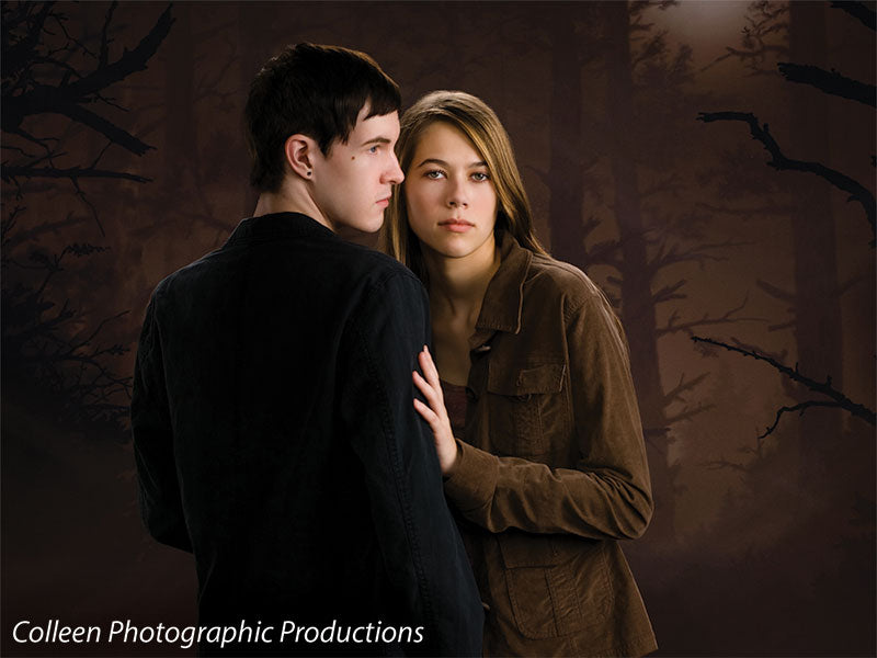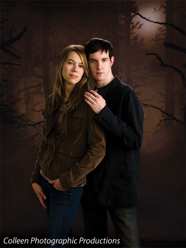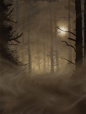 Immerse your subject in mystery and atmosphere with the Twilight Photography Backdrop. Featuring a shadowy forest at dusk, bathed in sepia tones and soft moonlight, this design captures the quiet tension of twilight. Wisps of fog curl through the trees, creating an eerie, cinematic feel ideal for bold storytelling and emotive portraiture.