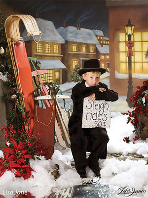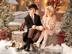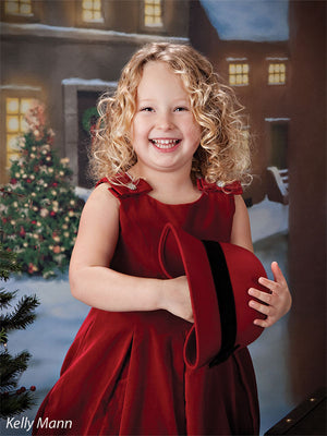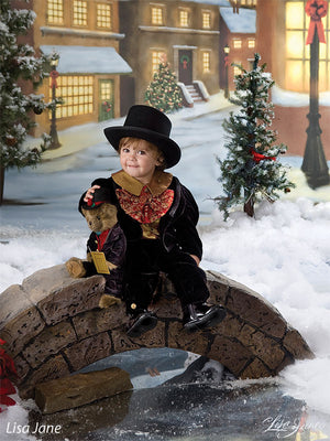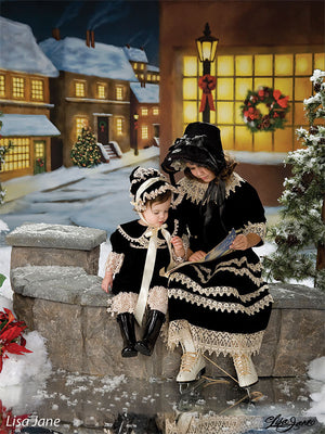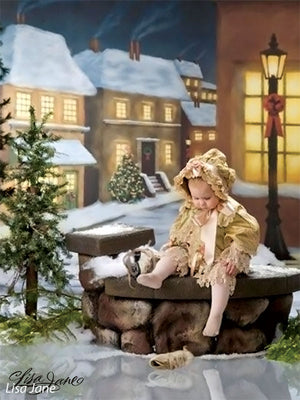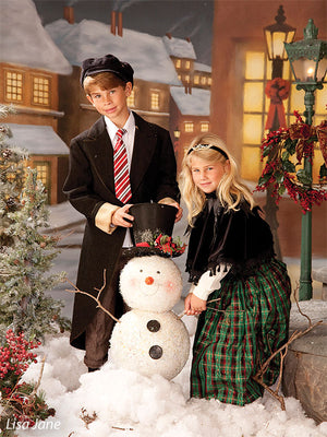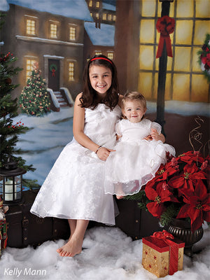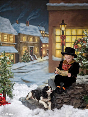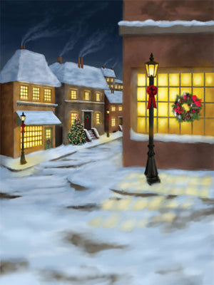 Step into a storybook winter wonderland with the Victorian Christmas Photography Backdrop. This charming backdrop captures a nostalgic holiday street scene, complete with glowing window lights, snow-covered rooftops, and vintage gas lamps adorned with wreaths and ribbons. A beautifully decorated Christmas tree centers the composition, making it the perfect setting for warm, memorable holiday portraits with timeless appeal.