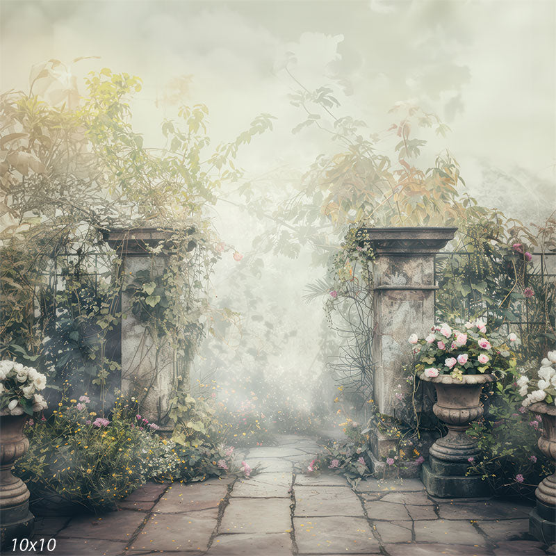 Step into an ethereal world of rustic charm and vintage elegance with our Vintage Abandoned Garden Photography Backdrop. Designed with professional photographers in mind, this backdrop offers a stunning setting reminiscent of an overgrown, enchanted garden. The backdrop's soft pastel hues and rustic stone pillars create an atmosphere of mystery and nostalgia, making it the perfect choice for photographers seeking to capture enchanting portraits, wedding photography, or nature-inspired photoshoots.