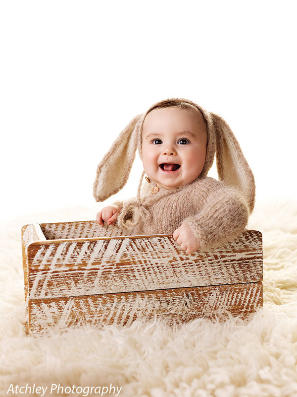 This White Vinyl Backdrop creates a clean background and makes any subject stand out. Perfect for indoor or outdoor photography, it's an essential for any studio needing an easy to use high key backdrop. Ideal for cake smash and pet portrait sessions.